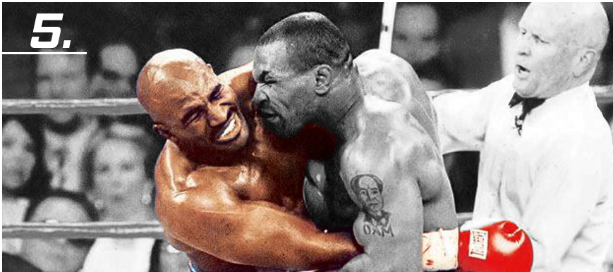 Tai buvo istorinė bokso dvikova, kurią labai realu jog žino net ir tie, kurie visiškai nesidomi šia sporto šaka! Būtent šioje dvikovoje Mike'as Tyson'as buvo diskvalifikuotas už neleistinus veiksmus, t.y. - įkando savo priešininkui į ausį. Didžiausias įdomumas yra tas, kad toks neleistinas, negarbingas ir netgi žiaurus veiksmas nesutrukdė šiems dviems kovotojams tapti geriausiais, bei artimiausiais draugais ateityje. Hm.. Galbūt tas daug nulių turintis dvikovos čekis padėjo užglaistyti visus nesutarimus įvykusius kovos metu (šypsosi).